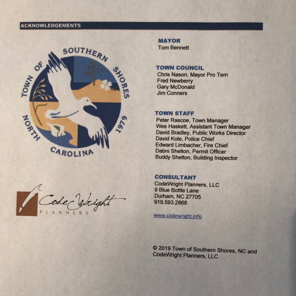 A project launched in 2015 and outlined by the consultant to take 14 months, CodeWright’s update/revision of the Southern Shores Town Code has been in the works for nearly 5 ½ years. The Town signed a contract with CodeWright Planners, a Durham-based company operated by principal Chad Meadows, in early September 2015.