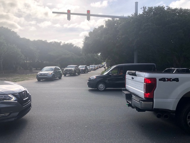 Cut-through traffic backs up on Sea Oats Trail at its intersection with Duck Road on a summertime Saturday afternoon.