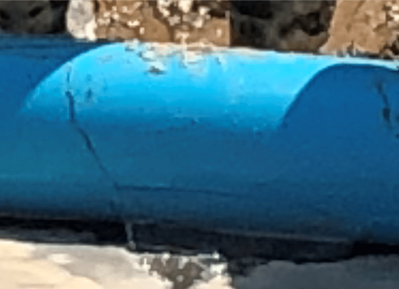 Part of the 10-foot split in the main water line that broke Thursday is visible in this photograph, which Town Manager Cliff Ogburn provided. According to Mr. Ogburn, the water was turned off when this photo was taken. You can see that water has seeped out of a crack on the bottom side, to the right.